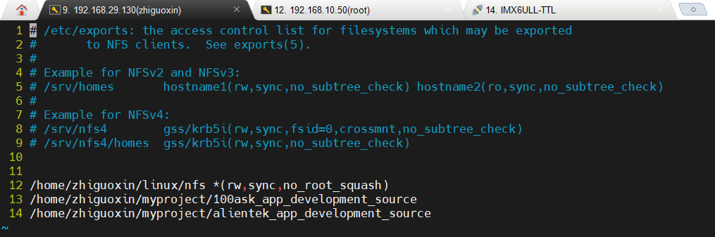 开发板想访问/home/zhiguoxin/myproject/alientek_app_development_source这个目录中的文件,就要把/home/zhiguoxin/myproject/alientek_app_development_source挂载到开发板的mnt目录,这样就可以通过nfs来访问/home/zhiguoxin/myproject/alientek_app_development_source了。