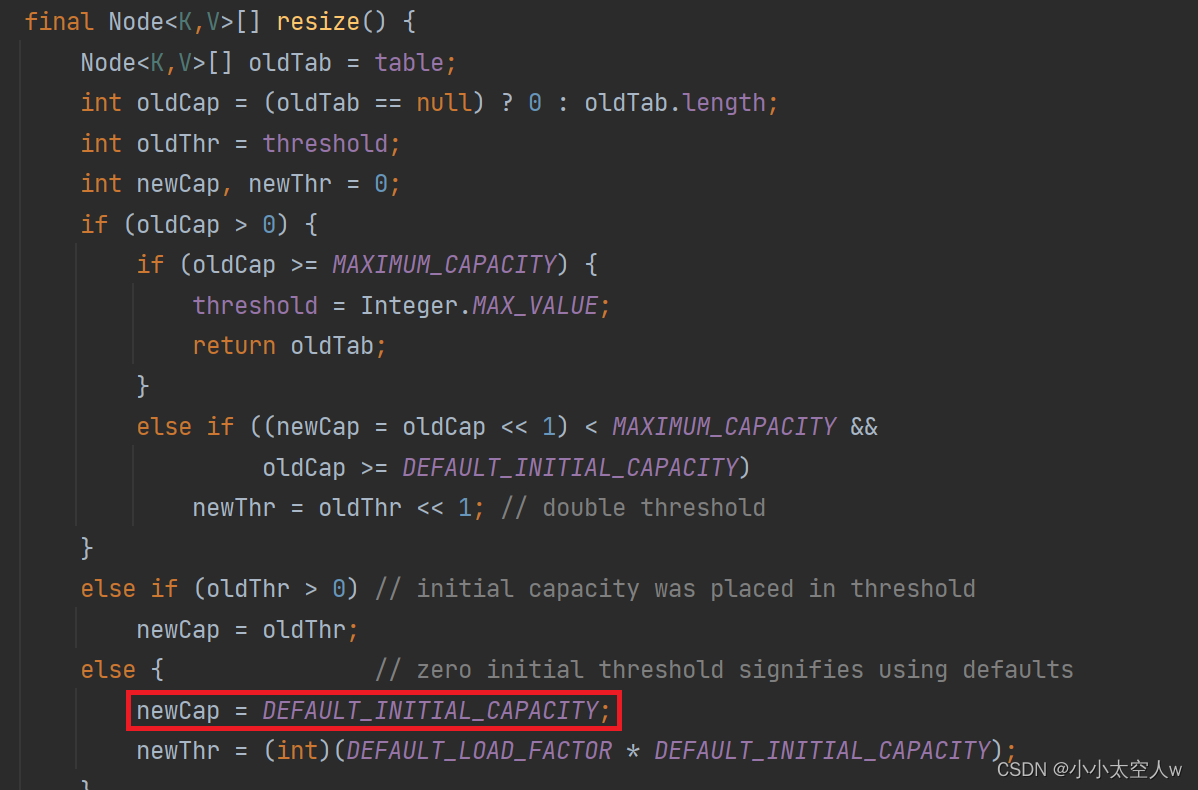 注意:可以看见当调用无参构造方法时,并没有为数组开辟空间,而是在第一次put时为数组开辟默认的容量16。