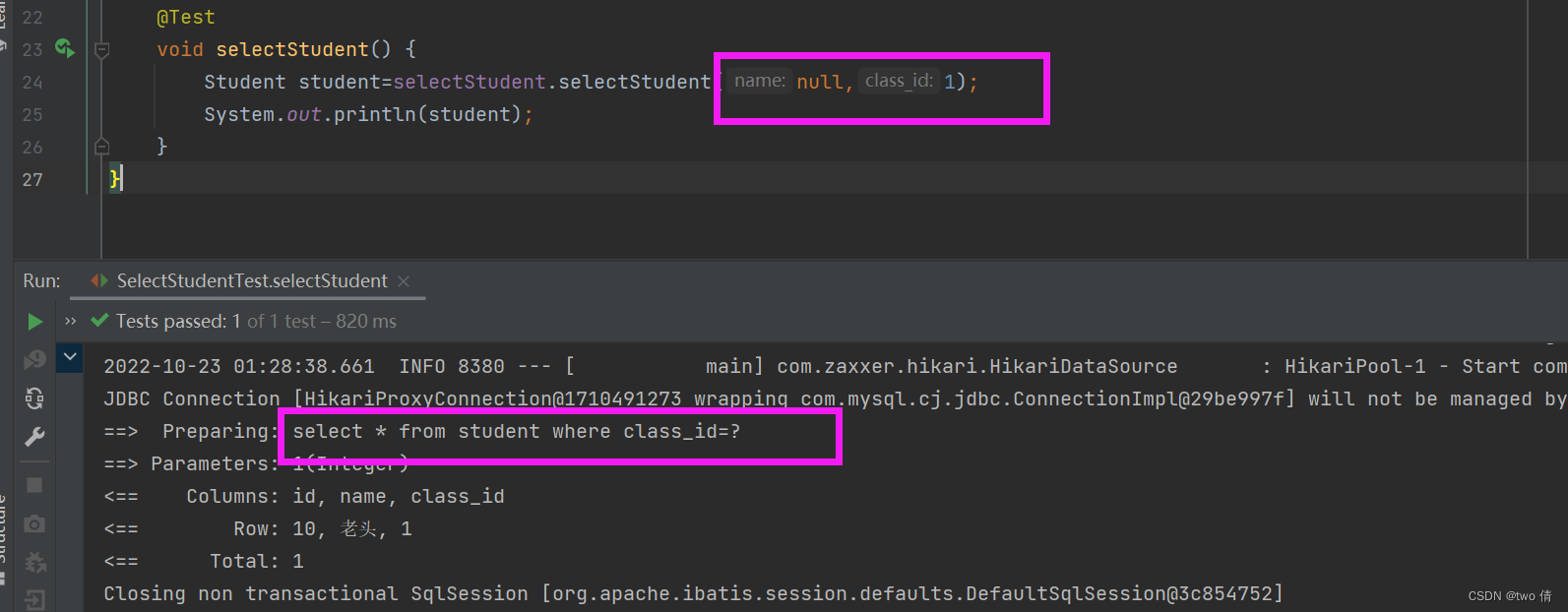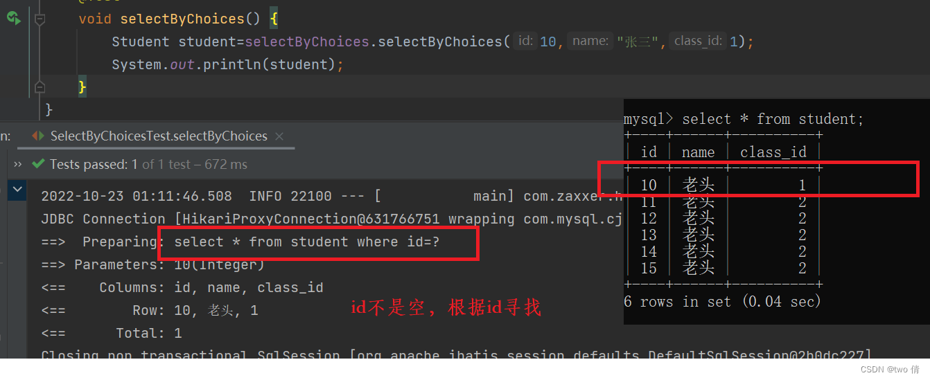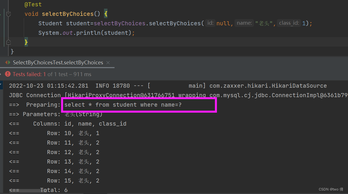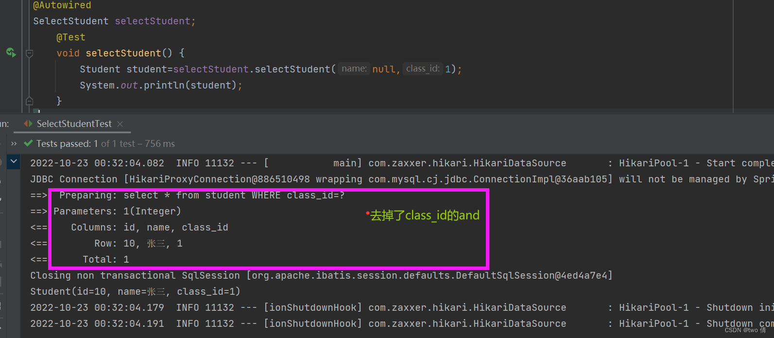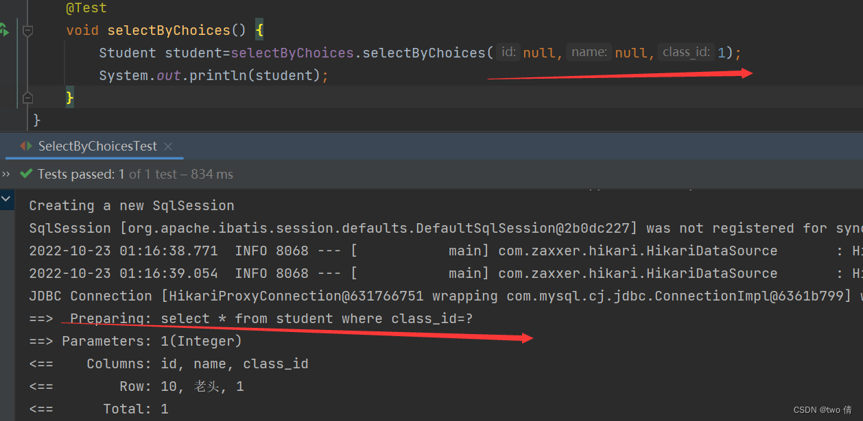 如果class_id为空,那么就是select * from student where name= #{name};