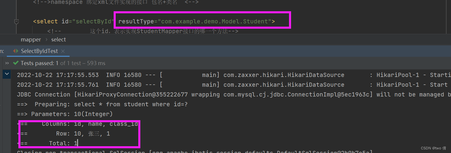 数据库的列名是class_id,而类字段是 stu_class,mybatis不能将这两个联系起来,这时就需要使用resultMap
