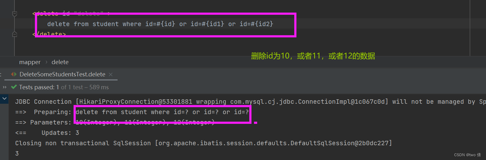 这样写的时候,就要多次 id=#{id},可以使用foreach标签实现循环