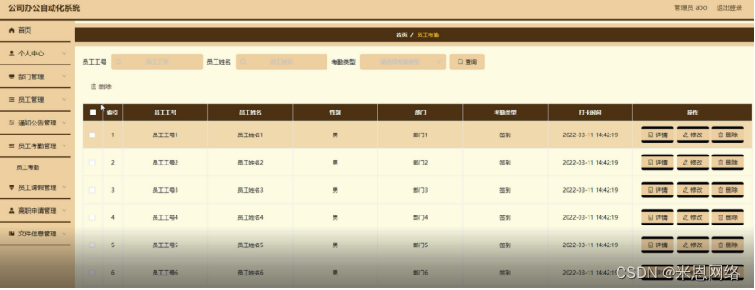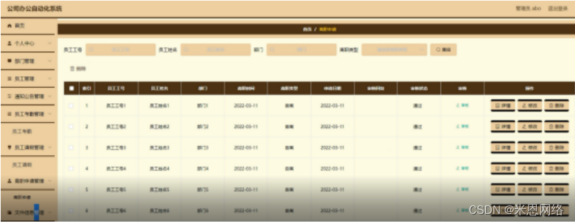 员工信息的添加和管理,员工考勤添加和管理和员工请假添加和管理以及离职申请管理,这些都是管理员的功能。