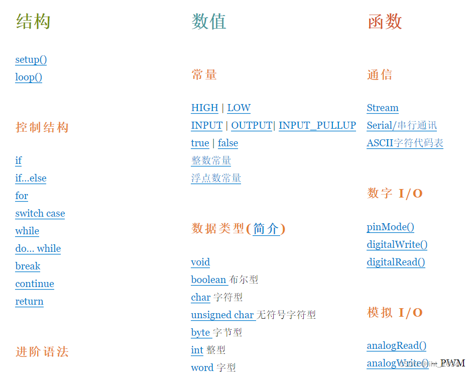 全部Arduino函数参见www.arduino.cc,或者www.taichi-maker.com之Arduino开发之Arduino编程。