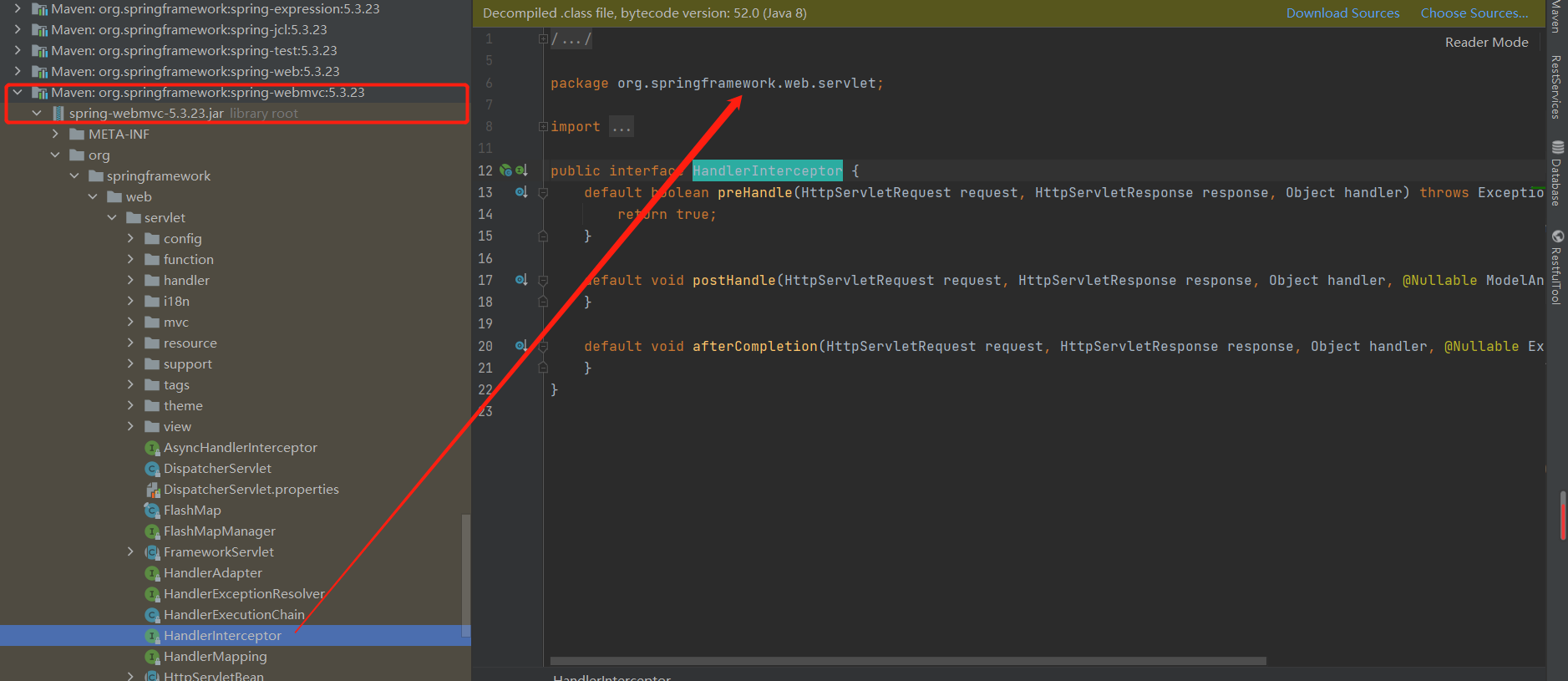 public class HeaderInterceptor implements HandlerInterceptor {@Overridepublic boolean preHandle(HttpServletRequest request, HttpServletResponse response, Object handler) throws Exception {System.out.println("进入拦截器=======执行前========");return true;}@Overridepublic void postHandle(HttpServletRequest request, HttpServletResponse response, Object handler, ModelAndView modelAndView) throws Exception {System.out.println("进入拦截器=======执行中========");}@Overridepublic void afterCompletion(HttpServletRequest request, HttpServletResponse response, Object handler, Exception ex) throws Exception {System.out.println("进入拦截器=======执行后========");}