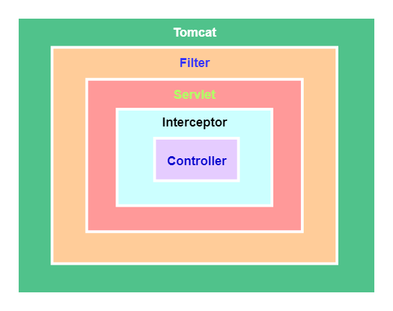 在上面说过,Filter是依赖于Tomcat容器的,所以请求是在进入Tomcat之后、进入Servet之前对请求进行一个预处理,然后进入Servlet,再经过拦截器进行处理、最后进入我们的Controller。