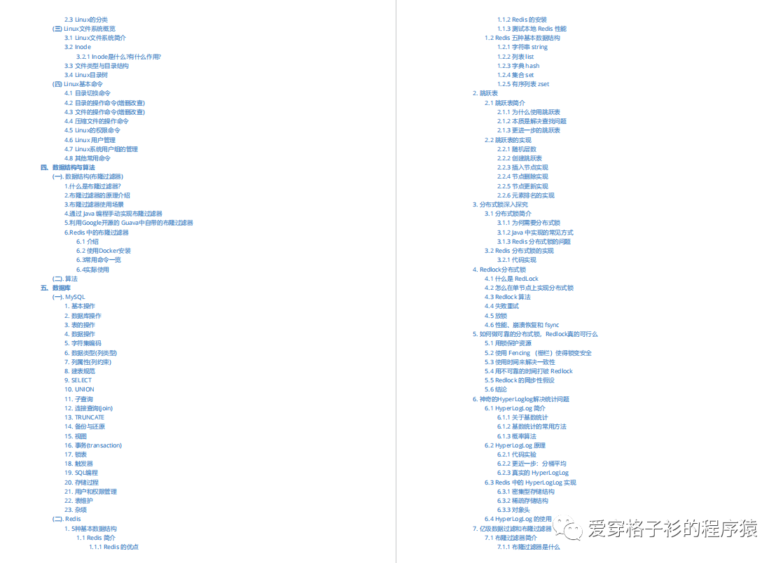 以下是pdf的目录,由于目录过长,所以只截图一部分。