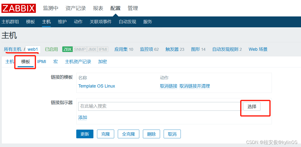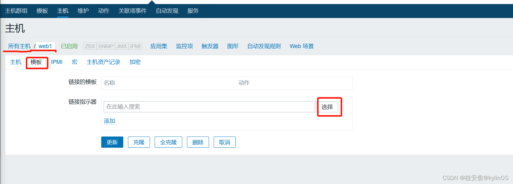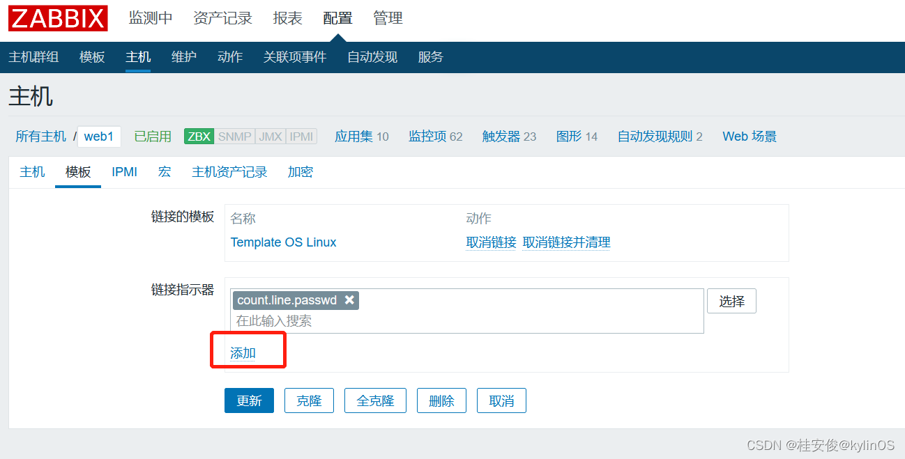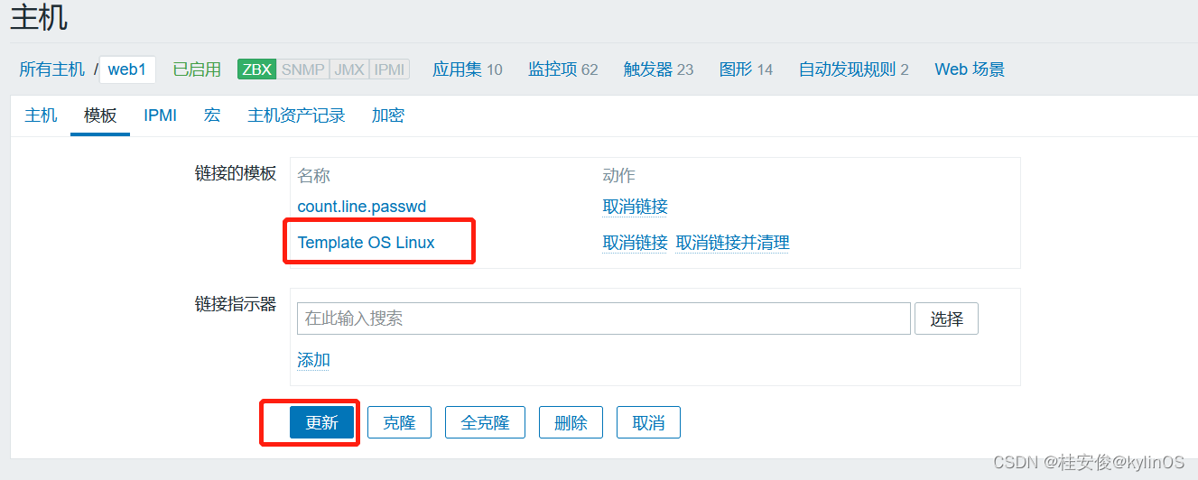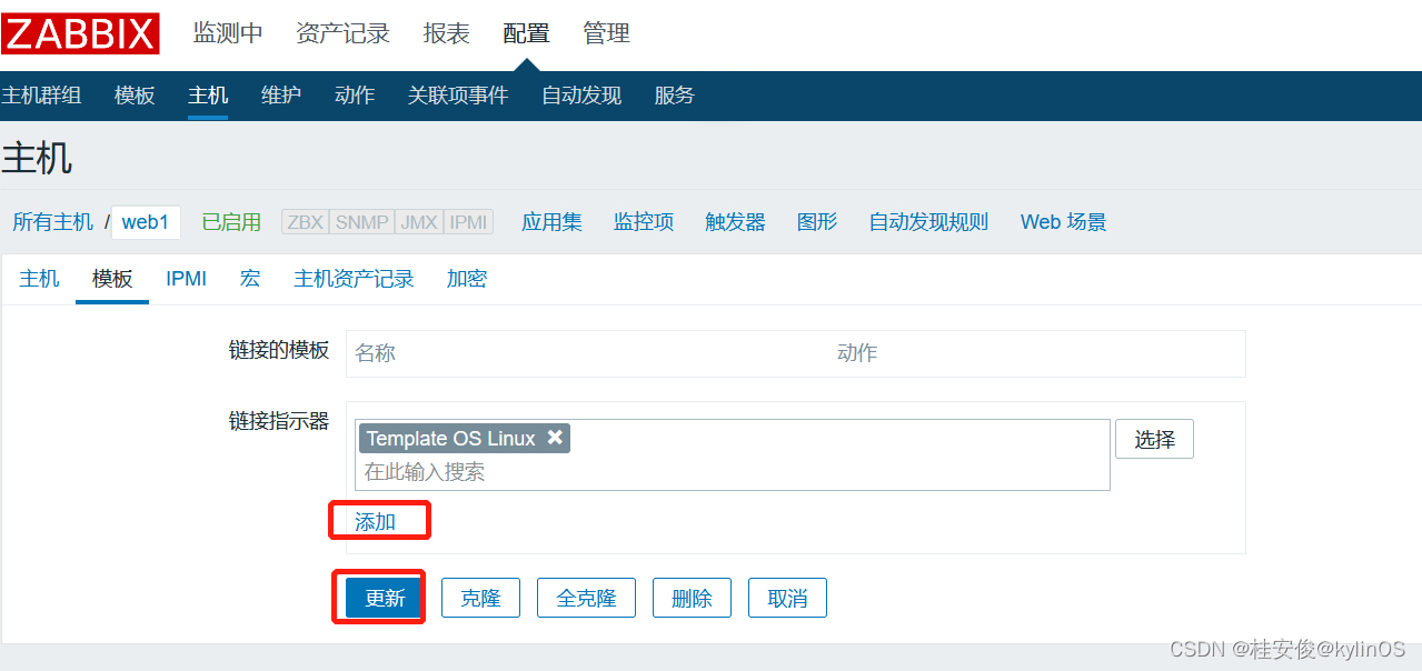 为web1主机添加关联的监控模板: