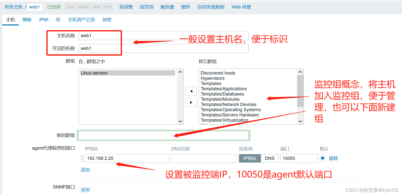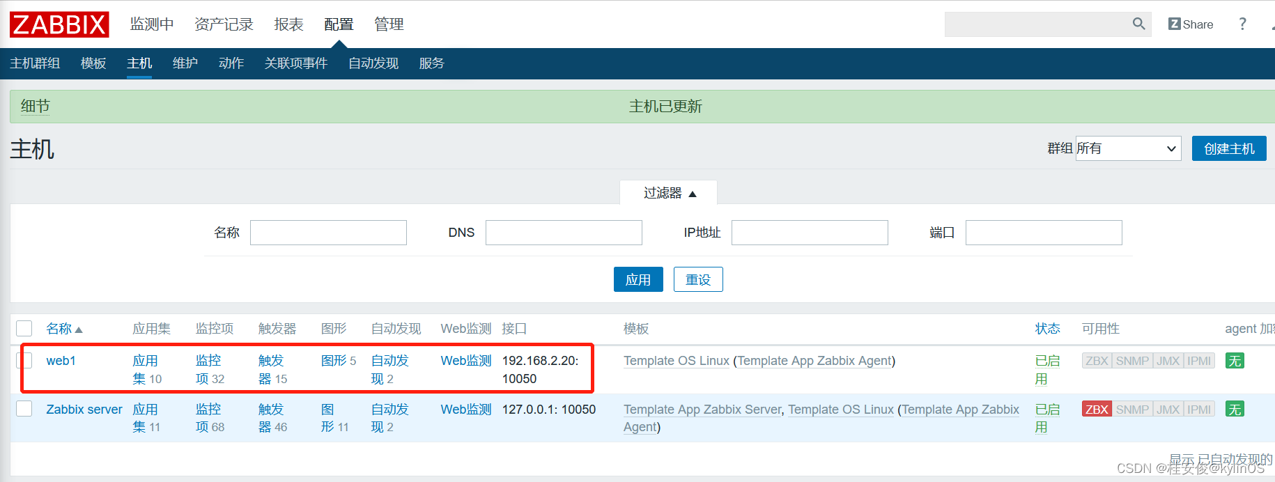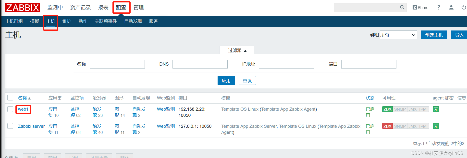 点击配置--->主机--->被监控主机web1