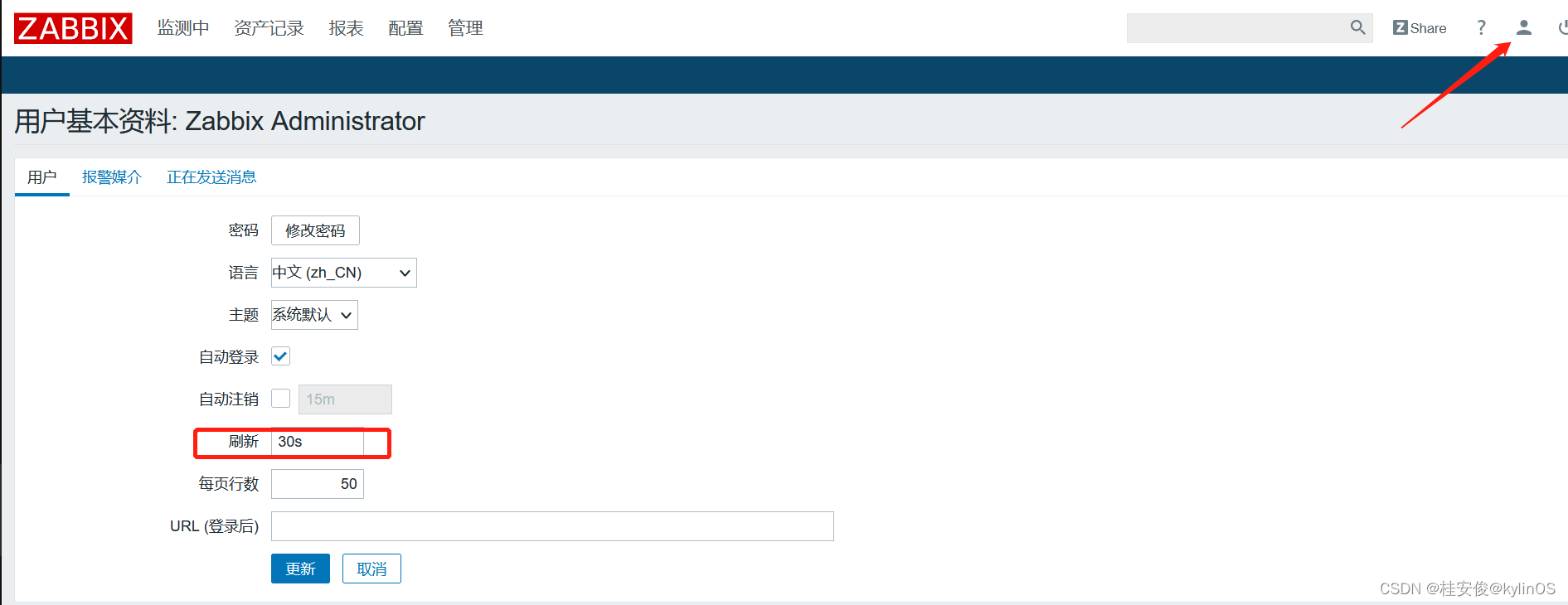 监控数据页面是自动刷新的,刷新时间可以自己设置: