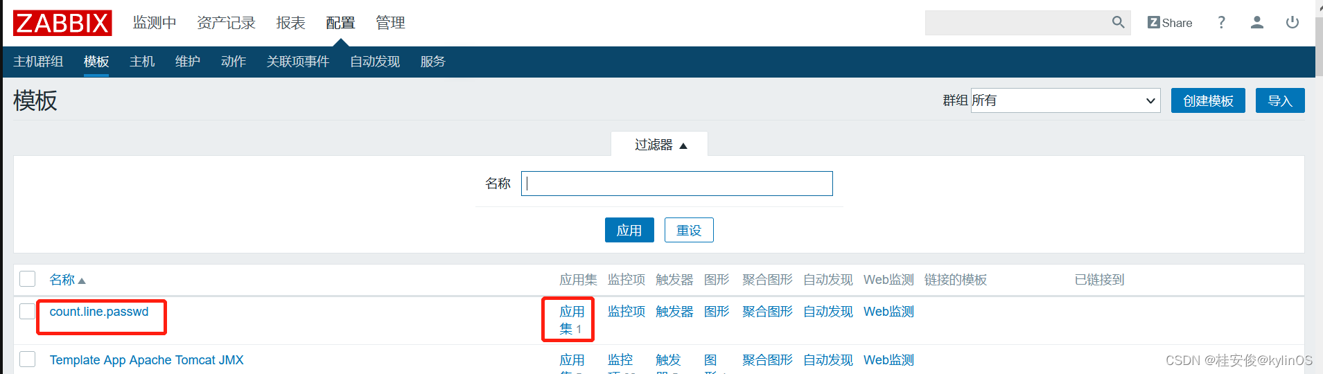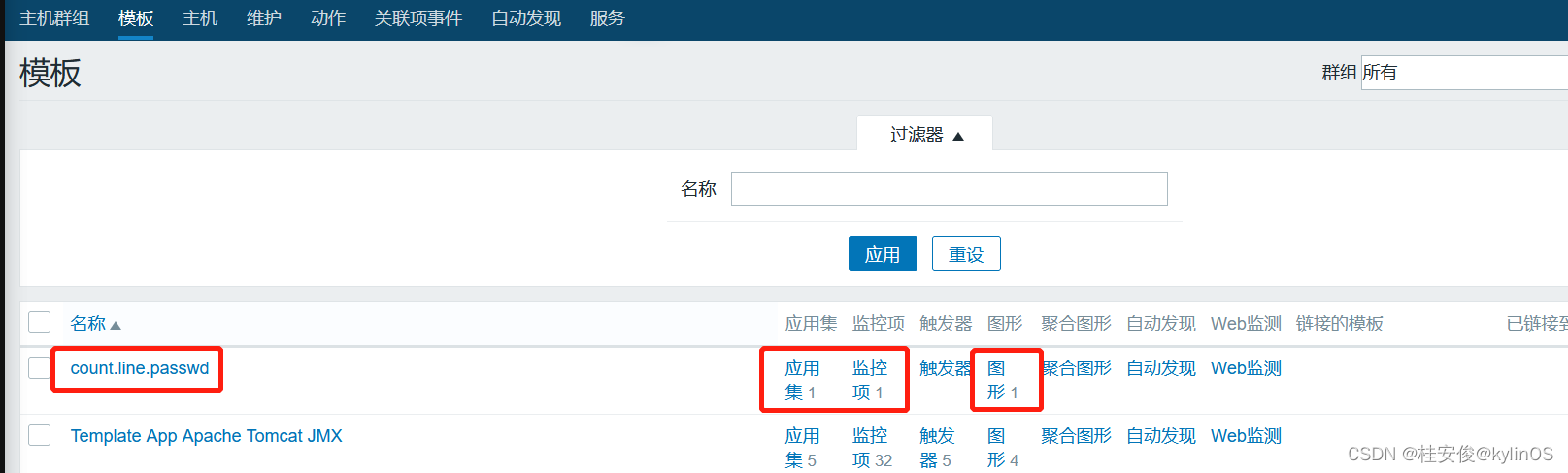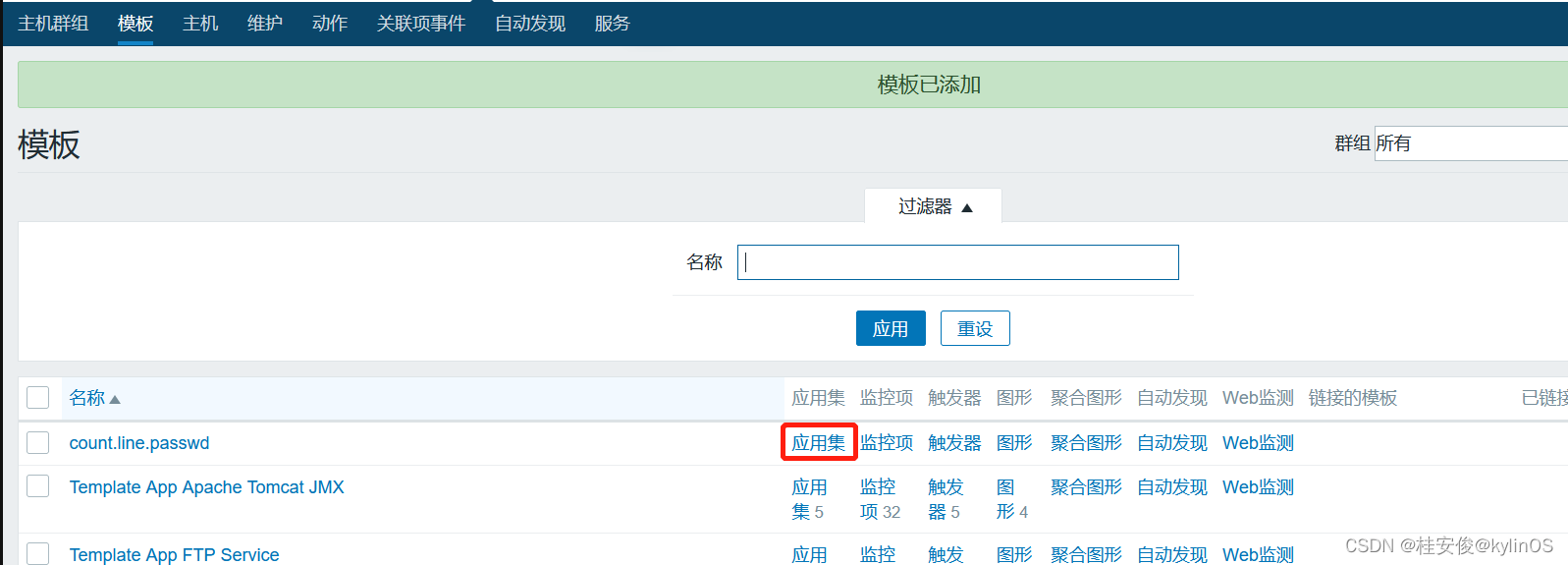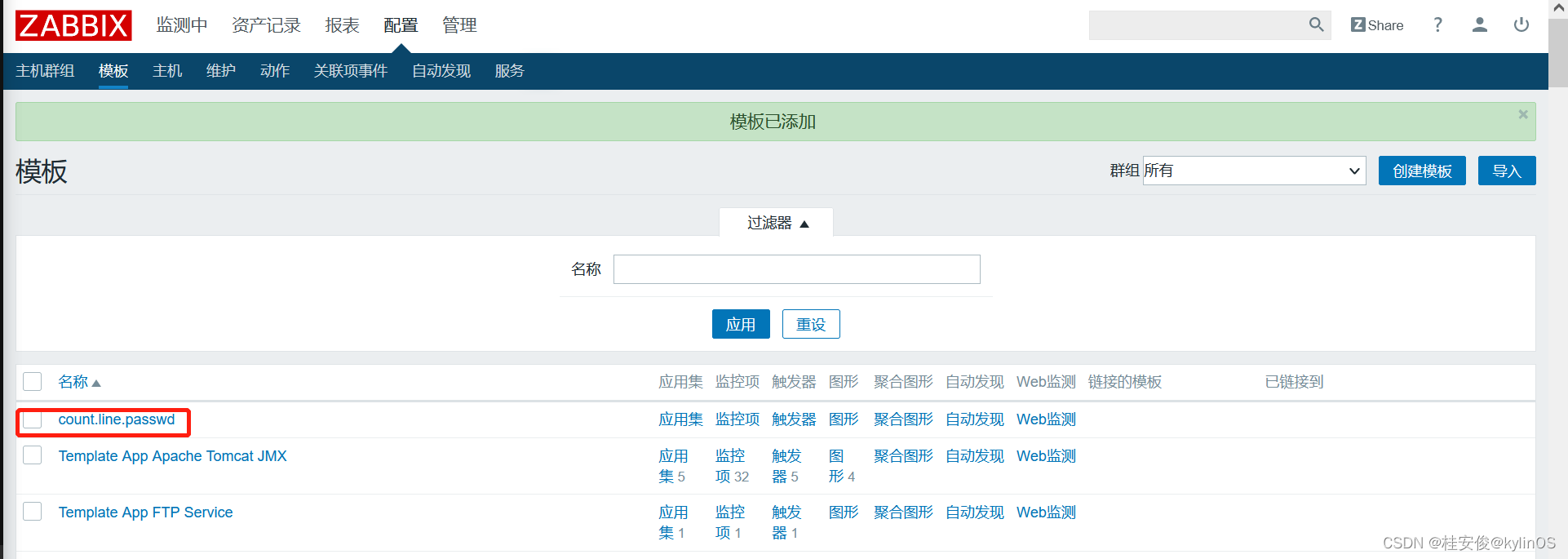 添加完成后,返回到所有模板页面,可以看到多了一个监控项: