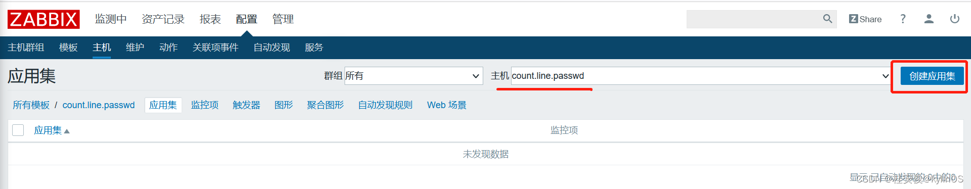 先创建应用集,点击监控模板后面对应的应用集: