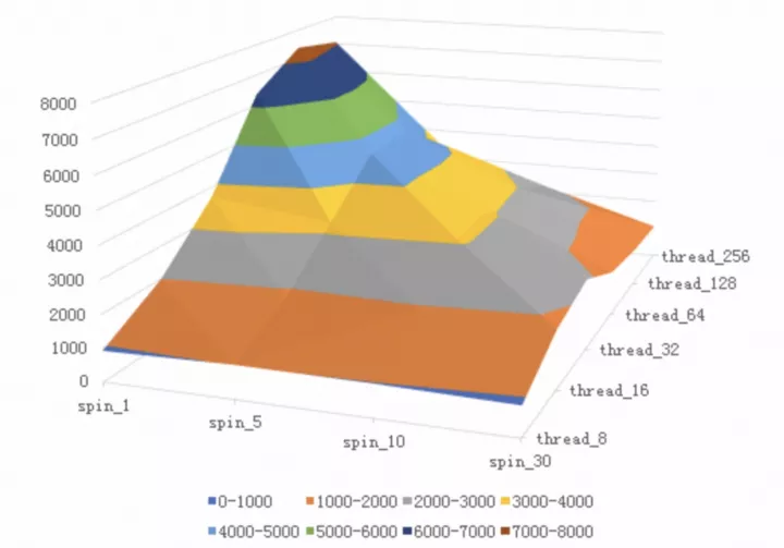 Skylake 8163 CPU型号在不同的delay参数和不同并发压力下的写入性能数据:
