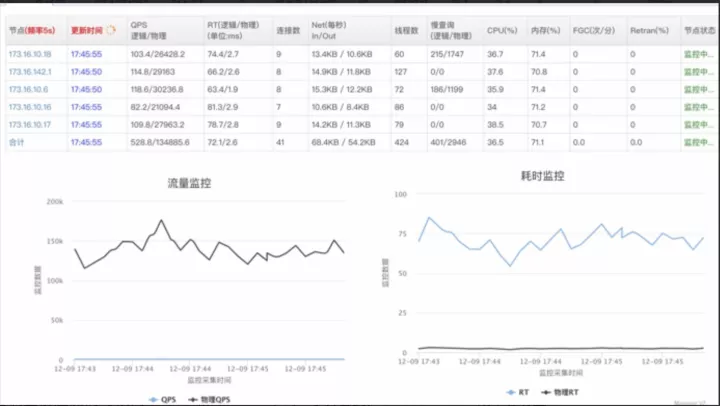 ● 物理RT/QPS是指Tomcat看到的MySQL RT 和QPS(这里的 RT 是指到达Tomcat节点网卡的 RT ,所以还包含了网络消耗)