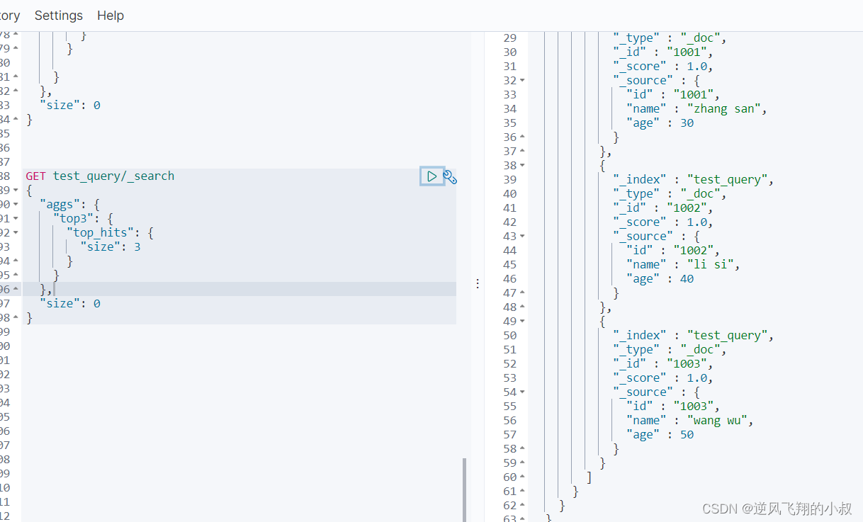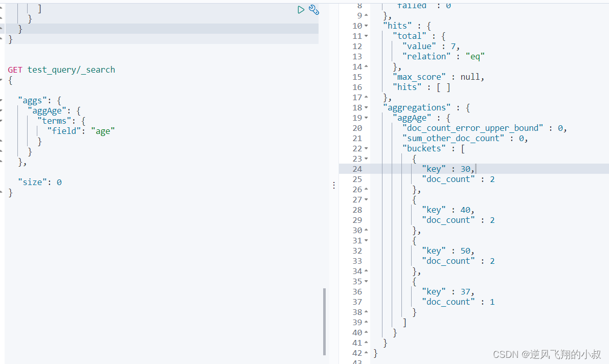 注意点:这里 "size"设置为0表示查询结果中不展示其他非聚合结果的信息;