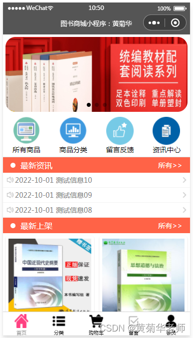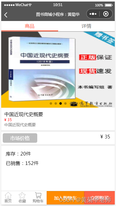 图书信息: 点击到图书详情页面,可以查看图书介绍、图片、价格、销售等、详情、已购买用户的评论列表。