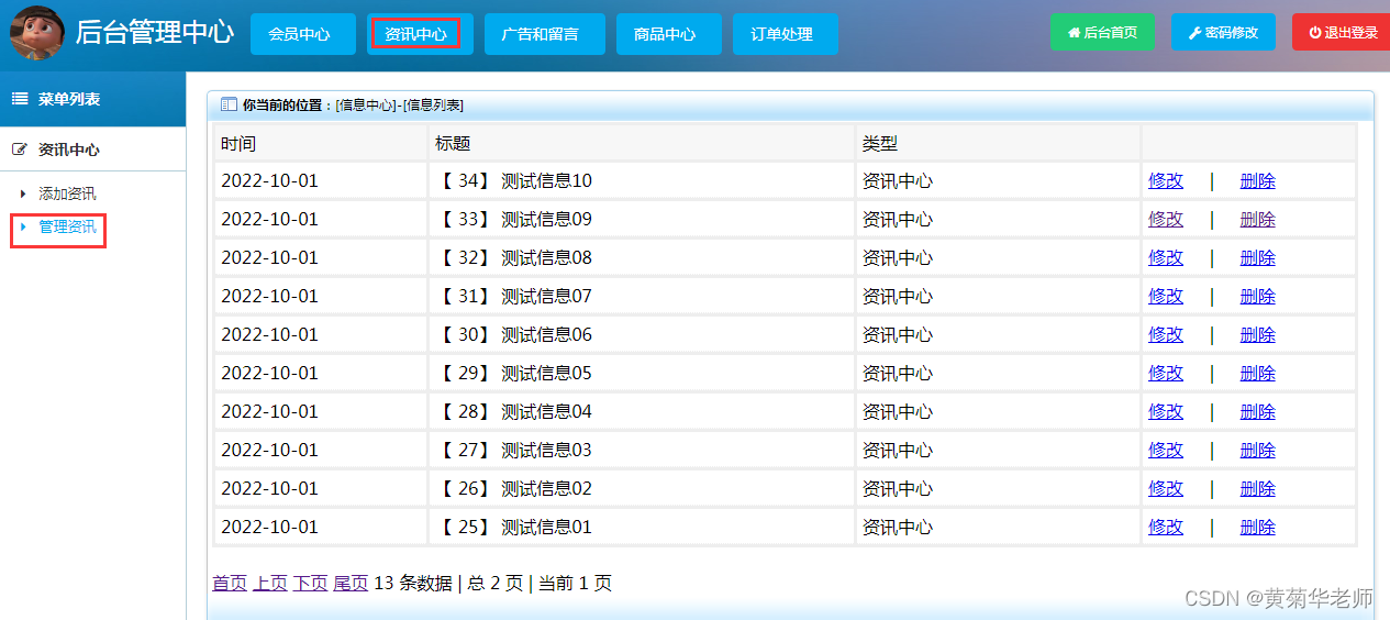 管理资讯:查看已录入资讯列表,支持删除和修改