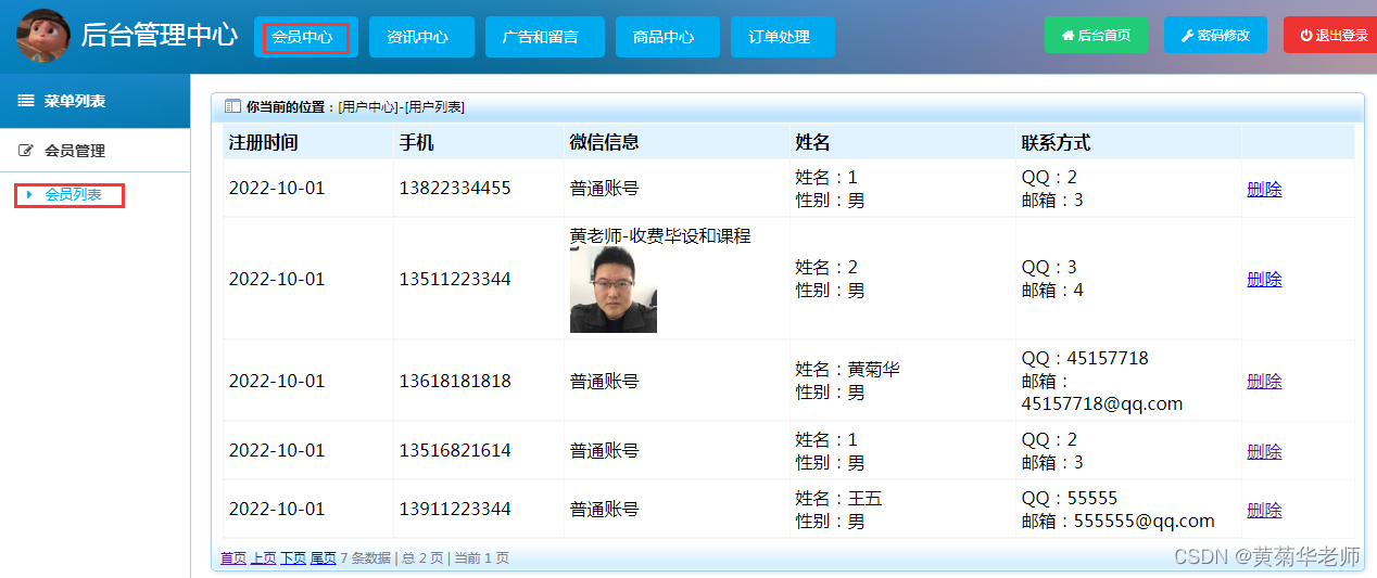 图书管理:查看所有已经录入的图书信息、支持修改和删除