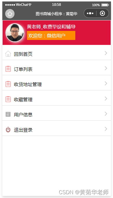 图书订单:查看所有用户下单的订单信息,包括下单时间、费用、收货地址、收货人信息、订单图书信息和备注等