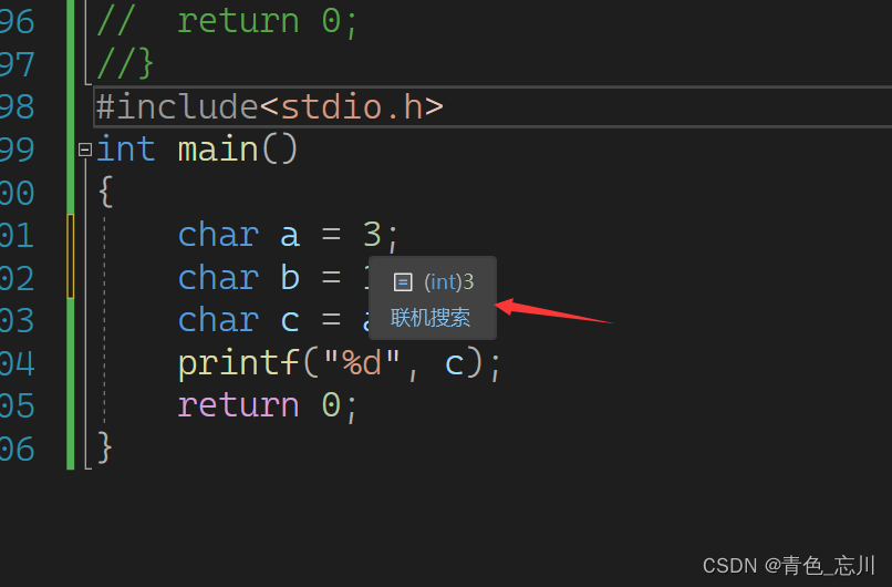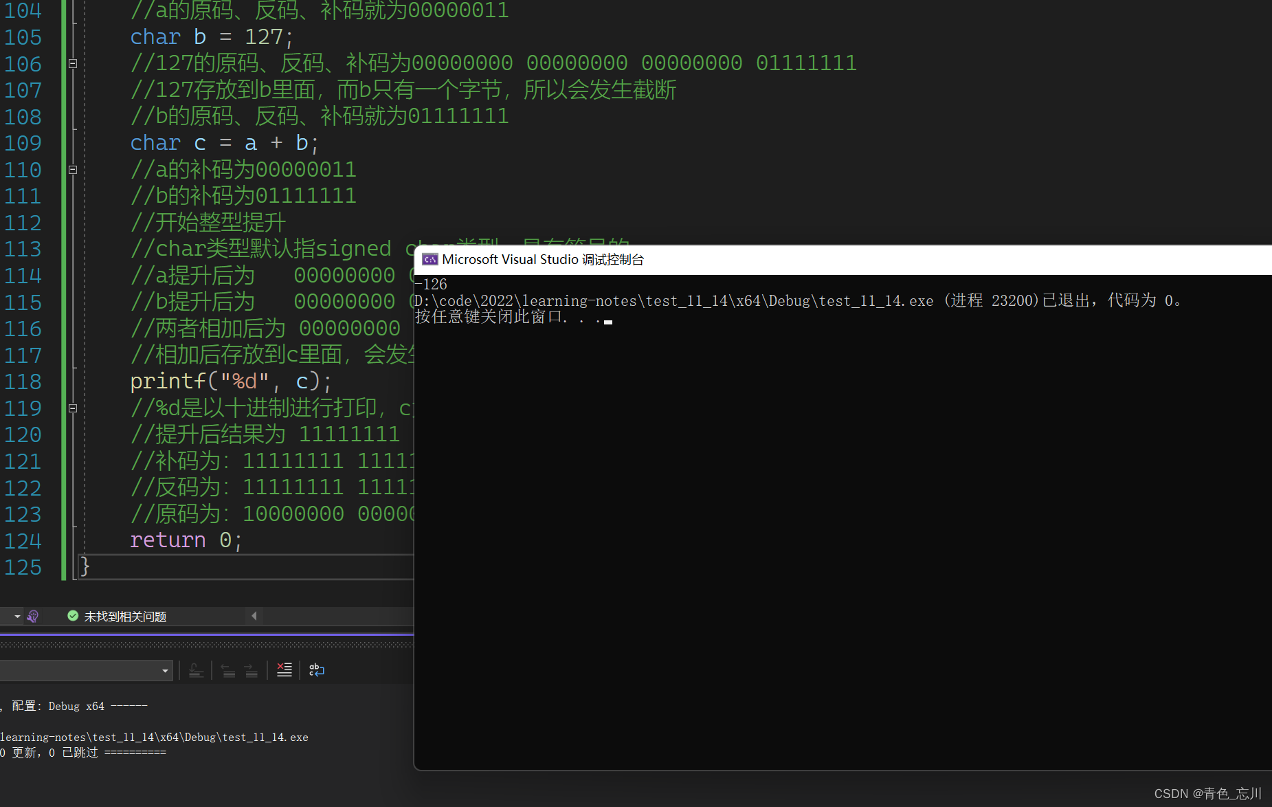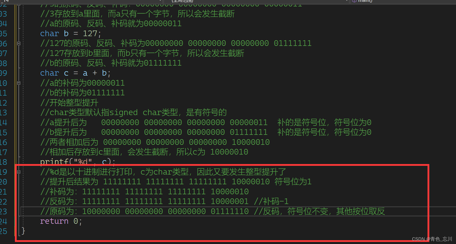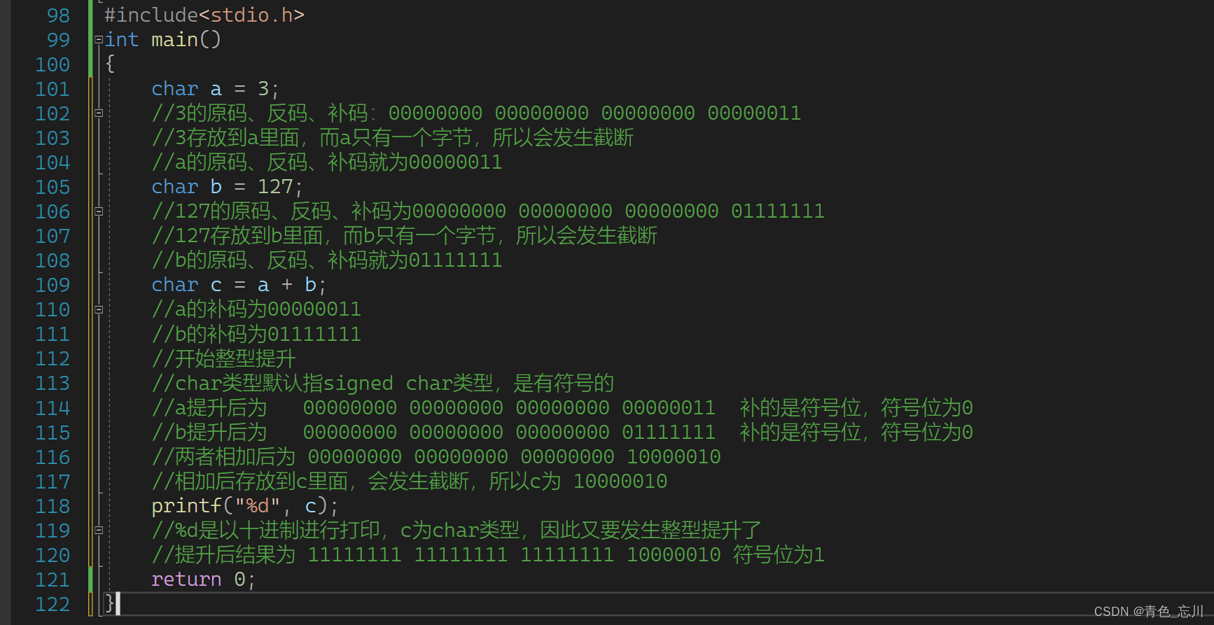由于我们总是以缺省整型类型的精度来进行计算的,所以我们这个char类型的数据在运算的时候会先转化为int类型。然后在进行计算,这就是整型提升