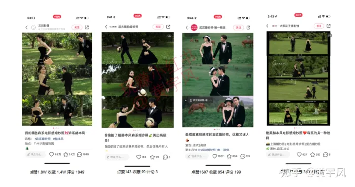 新账号,如何开始写笔记,我的思路是,模仿!!因为爆款都是重复,有些爆文连风格都是重复的。以黑色森系婚纱照为例,文章在排版、文案风格都差不多。