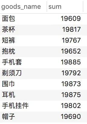 全表扫描 order_info 表,取出 goods_name = 某商品(比如围巾、耳机、茶杯等)的记录