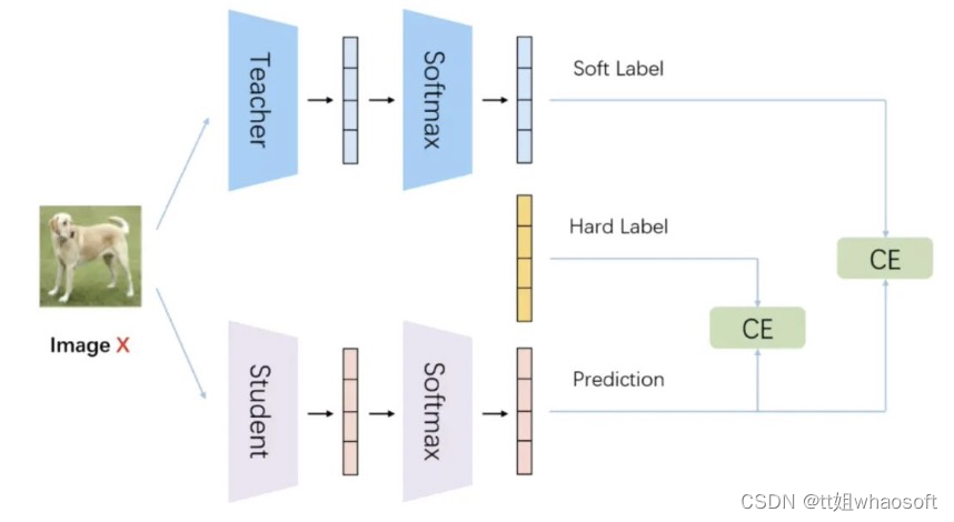 原始训练模型的做法是让模型的softmax分布与真实标签进行匹配,而知识蒸馏方法是让student模型与teacher模型的softmax分布进行匹配。直观来看,后者比前者具有这样一个优势:经过训练后的原模型,其softmax分布包含有一定的知识——真实标签只能告诉我们,某个图像样本是一辆宝马,不是一辆垃圾车,也不是一颗萝卜;而经过训练的softmax可能会告诉我们,它最可能是一辆宝马,不大可能是一辆垃圾车,但绝不可能是一颗萝卜。