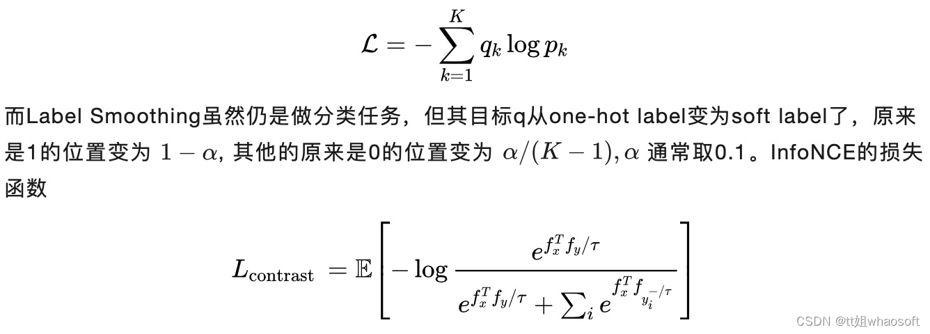 从softmax和InfoNCE损失函数上理解,把InoNCE公式的分母想象成soft label的所有位置相加,也就是最大值的那个位置可以看成是positive pair,其他位置都可以看成是negative pair,softmax的损失函数不是跟InfoNCE损失函数一模一样了吗,异曲同工!也就是说hard label可以认为只有positive pair,而soft label仍然保留negative pair。因此,soft label更容易避免退化解问题。