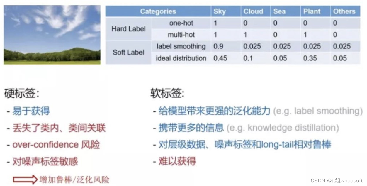 hard label更容易标注,但是会丢失类内、类间的关联,并且引入噪声。