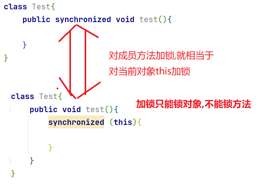 synchronized加在成员方法上就相当于对当前对象this加锁