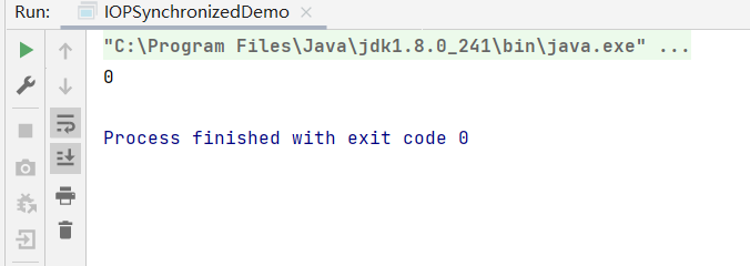 }public class IOPSynchronizedDemo {public static void main(String[] args) throws InterruptedException {Room room = new Room();//利用room对象(锁对象)来保护共享资源Thread t1 = new Thread(()->{for(int i =0;i<5000;++i){room.increase();}},"t1");Thread t2 = new Thread(()->{for(int i =0;i<5000;++i){room.decrease();}},"t2");t1.start();t2.start();t1.join();t2.join();System.out.println(room.getCounter());}