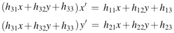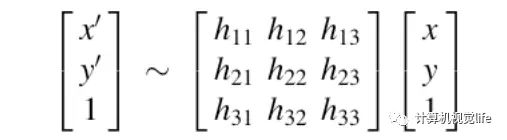 H矩阵(单应性矩阵)大小为3×3: