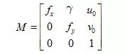 所以一个单应性矩阵H可以提供上述两个约束条件。那么如何利用上述两个约束条件求解内参或者外参呢?我们一步一步来看,由前面可知内参矩阵M: