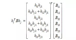 为了利用旋转向量之间的约束关系,我们先将单应性矩阵H化为3个列向量,即H=[h1 h2 h3],则有: