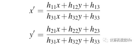 言简意赅定义:定义在两个不同视角中对同一平面范围内的特征点的射影变换(projective transformation)即: