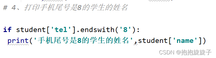 声明一个列表,在列表种保存6个学生信息1、统计不及格学生的个数2、打印不及格学生的名字和对应的成绩3、统计未成年学生的个数4、打印手机尾号是8的学生的姓名5、打印最高分和对应学生的名字6、删除性别不明的所有学生(这里有陷阱,三思! ! ! )7、将列表按学生成绩从大到校排序(选做)