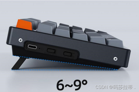 Keychron键盘是倾斜设计,拥有可以调节三种角度的角架支持6~9 °,可以寻找一个适合你的角度。
