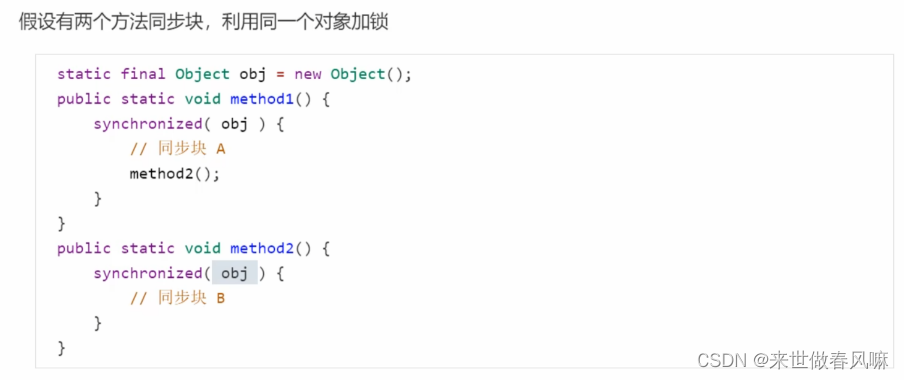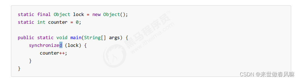 注意: (1)synchronized 必须是进入同一个对象的 monitor 才有上述的效果 (2)不加 synchronized 的对象不会关联监视器,不遵从以上规则