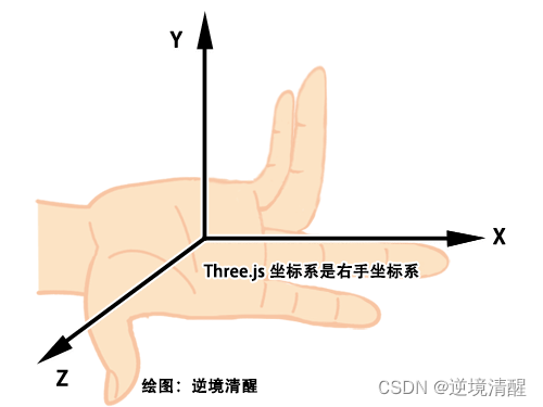 Three.js 使用的坐标系是右手坐标系,看起来就是这样的:
