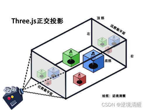 (b)、three.js中的正交投影和透视投影原理图解