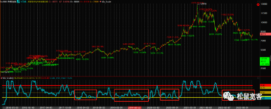 1、在整体低波动运行期间,有很多的波动上升和下降的过程演绎,在这个周期套周期过程中,我发现低波动和波动逐步走低→带来回撤和亏损。当然这个结论需要后面各个品种和这个过程的多次印证才能确定。