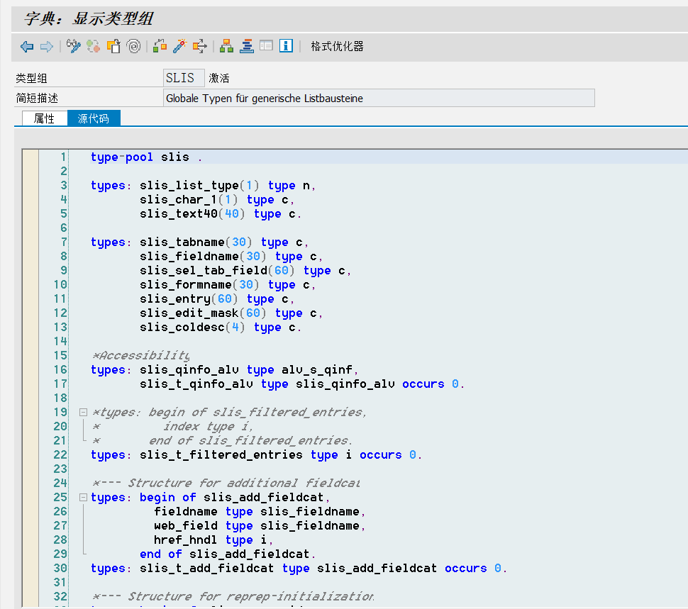在ABAP ALV报表开发中,我们也经常会使用到SLIS类型组,如下图所示: