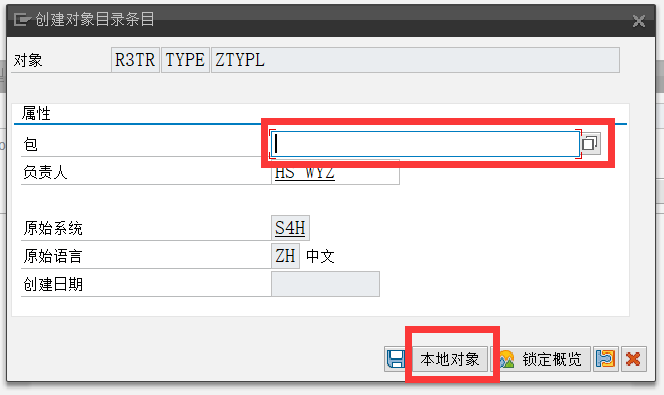 选择类型组要保存到的SAP包,或者直接保存到本地对象中,如下图所示: