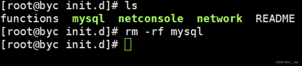 4、删除/etc/init.d/下跟mysql有关的全部文件,一般包括mysql文件或mysqld文件