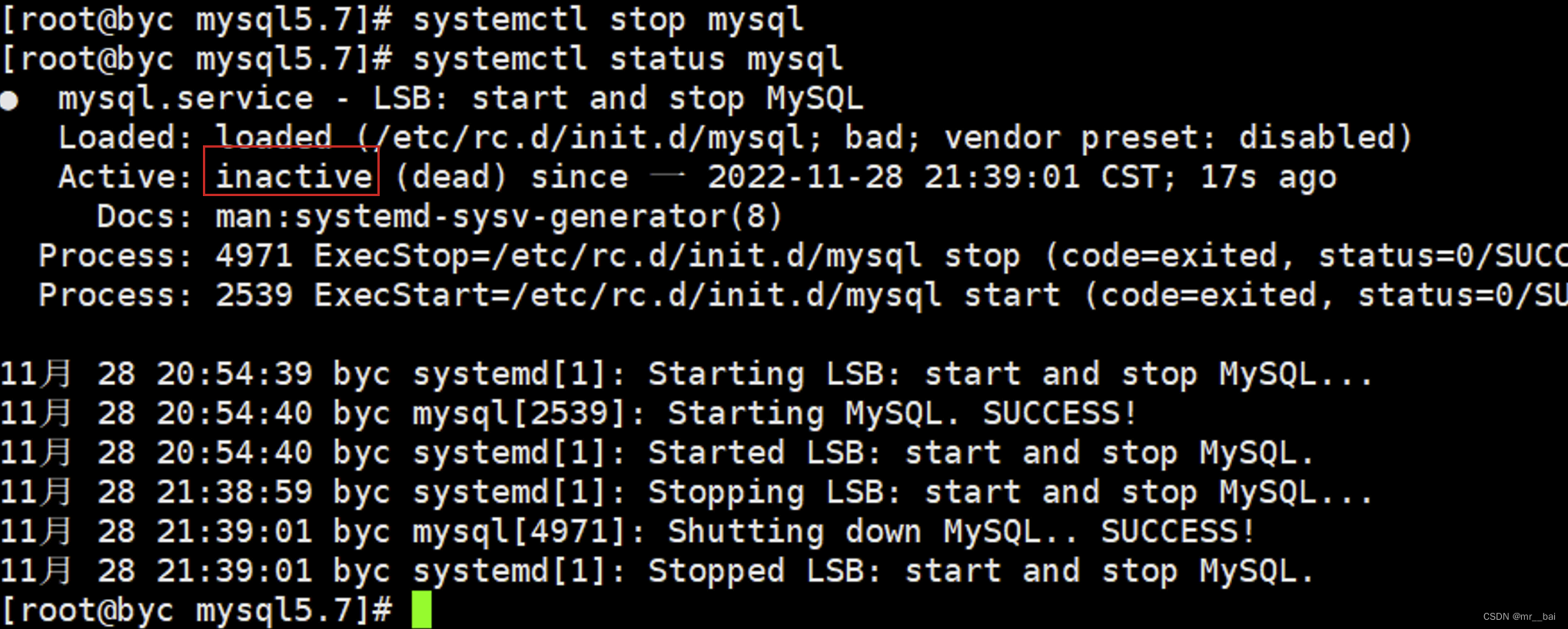 # 停止mysql服务