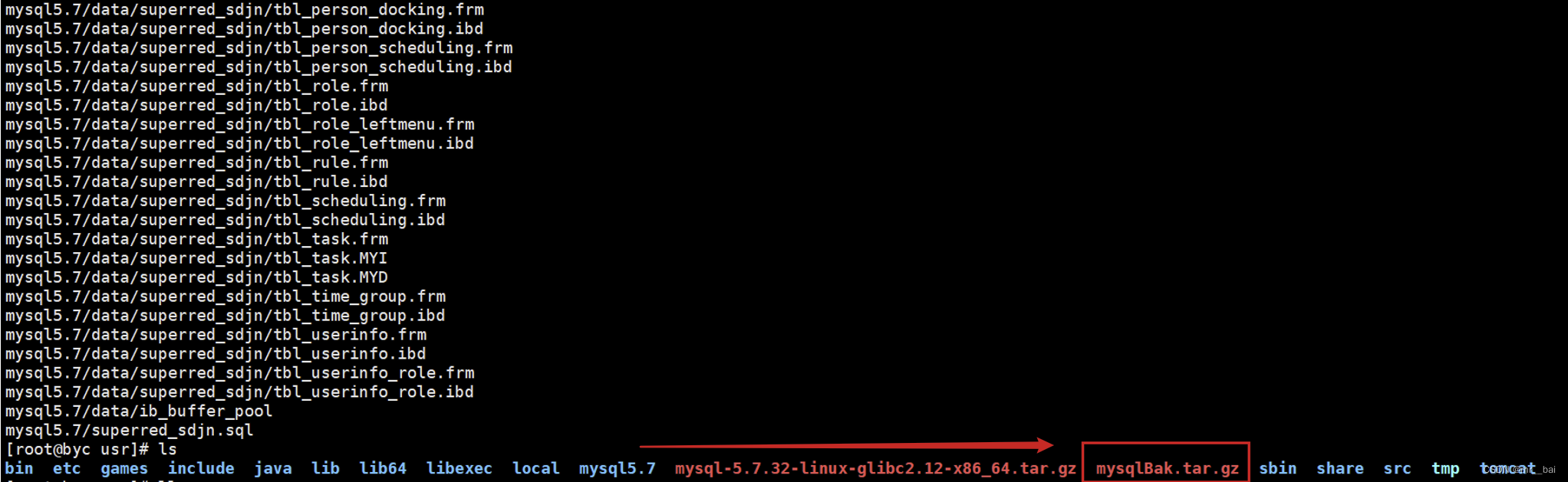 进入原mysql同级目录下:/usr,并解压
