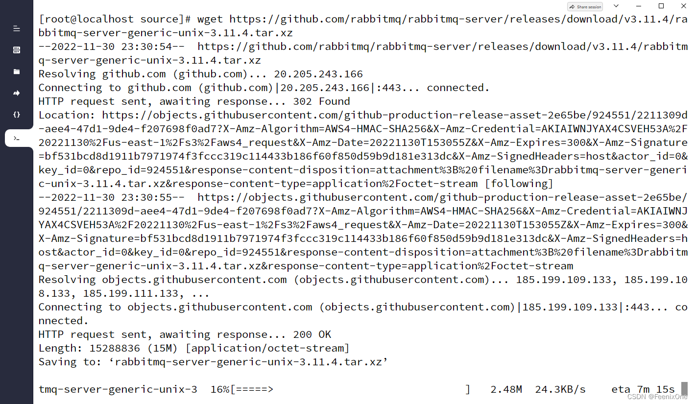 wget https://github.com/rabbitmq/rabbitmq-server/releases/download/v3.11.4/rabbitmq-server-generic-unix-3.11.4.tar.xz