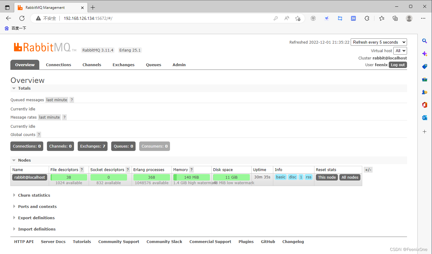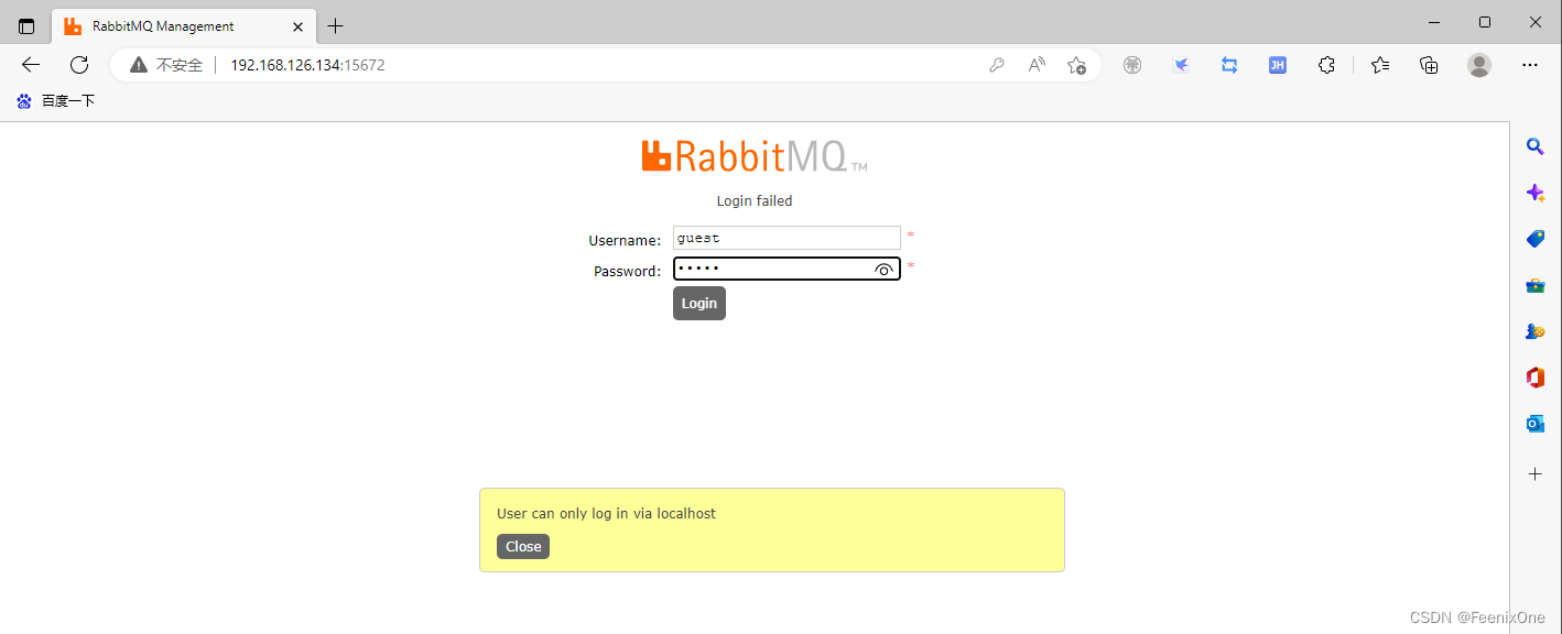使用刚刚创建的feenix用户远程登录RabbitMQ服务