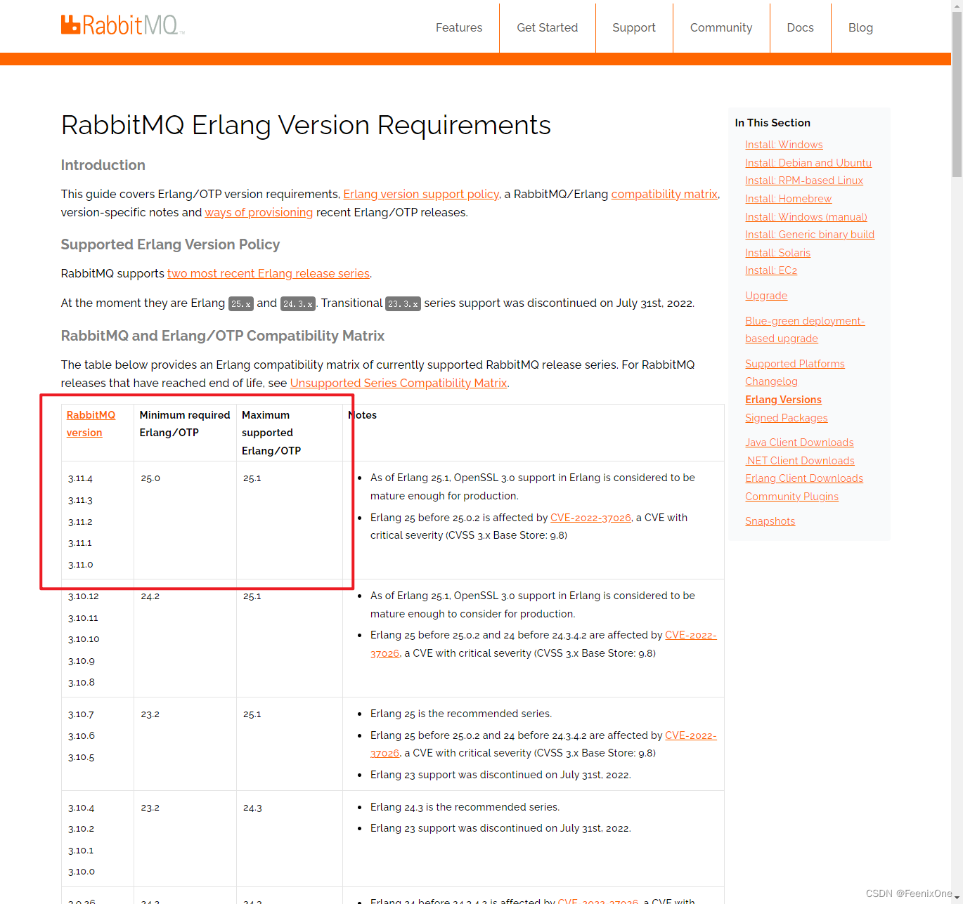 根据官网提供的RabbitMQ和Erlang对应版本对比:https://www.rabbitmq.com/which-erlang.html,下载的RabbitMQ版本是3.11.4,对应的Erlang版本应该为25.1