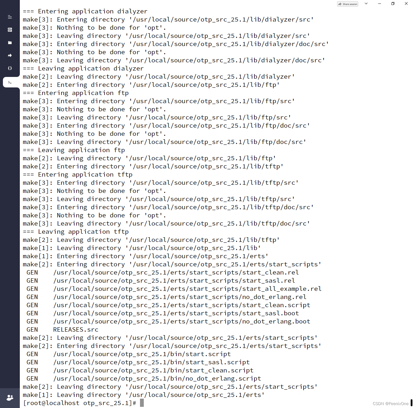 编译:make,这一步耗费时间会比较久,有1说1,所有软件的编译过程中,这个Erlang的编译是数1数2的慢