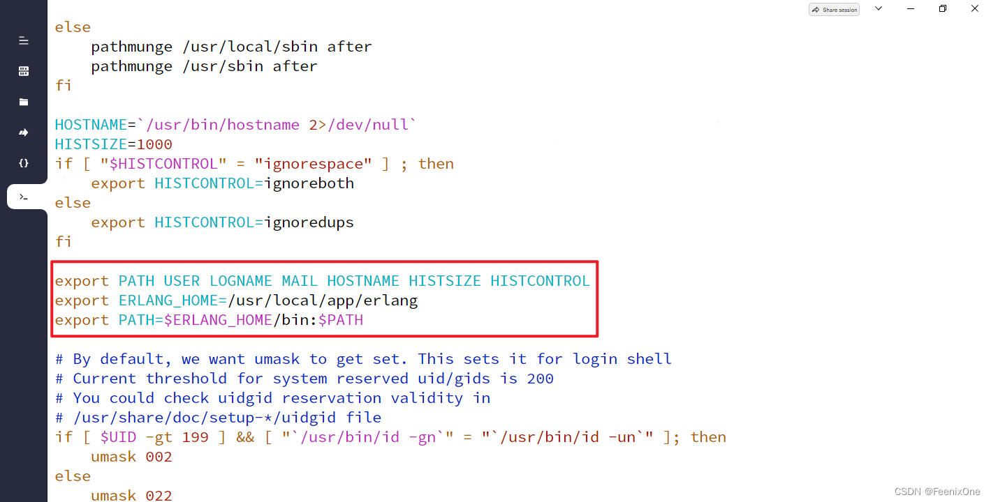 配置Erlang环境变量:vim /etc/profile
